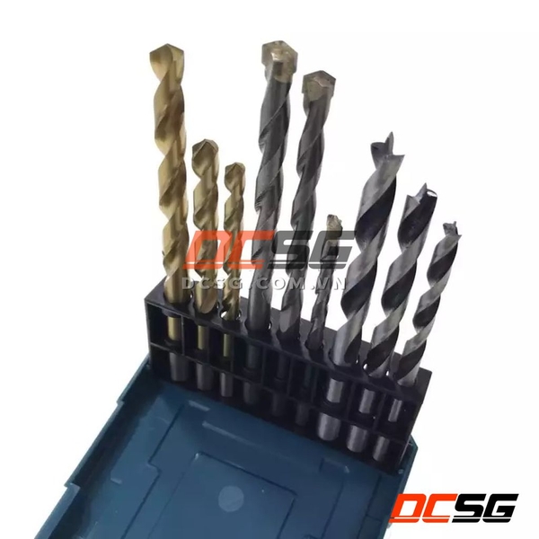 * Bộ sản phẩm bao gồm 09 mũi khoan và được đóng gói trong hộp nhựa PAP có nắp bằng nhựa dẽo PS trong suốt rất đẹp mắt.