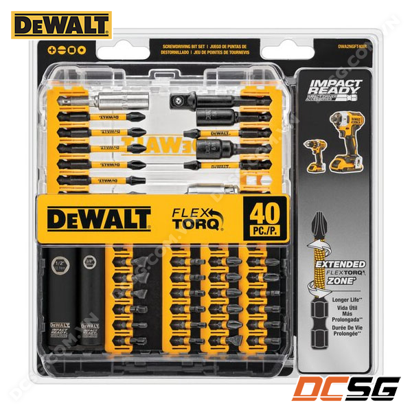 Bộ DWA2T40IR gồm nhiều bit và phụ kiện khác nhau, cho phép bạn vặn/táo đủ loại vít, bu-lông, đai ốc,… từ đơn giản đến công việc đòi hỏi lực cao. Cụ thể bao gồm: