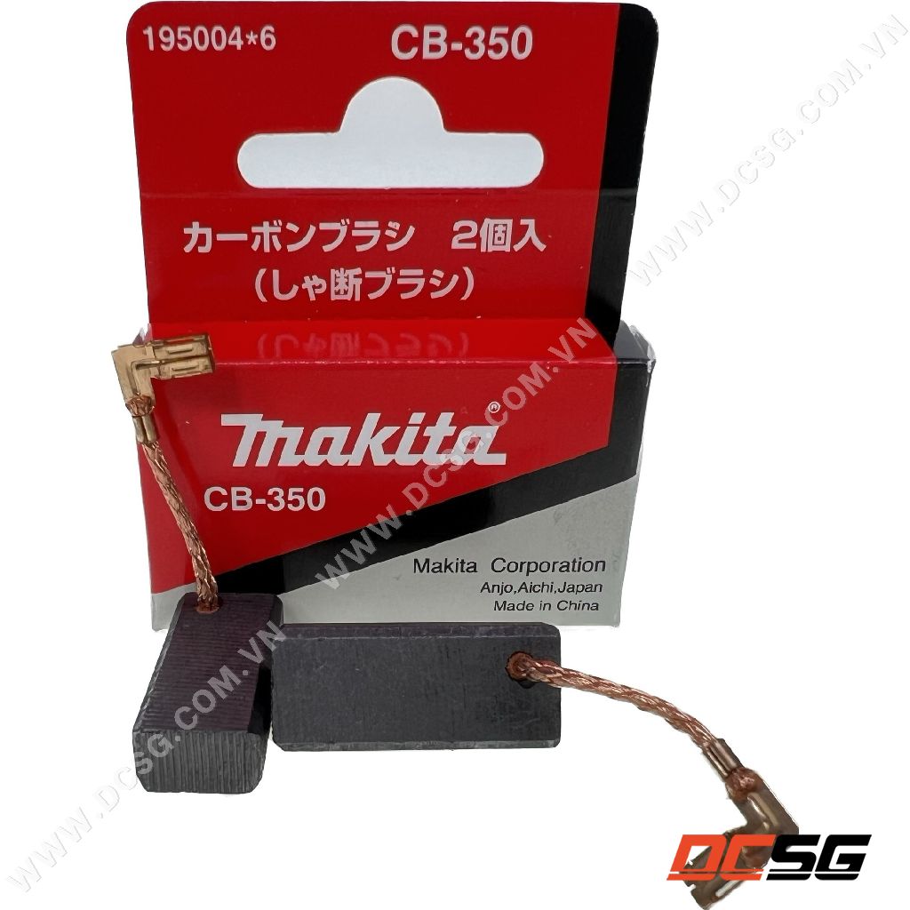 - Chổi than CB-350 Makita 195004-6 là phụ tùng chính hãng Makita Việt Nam phân phối, sản phẩm dùng để thay thế cho máy khoan động lực và máy đục Makita như: HM0870C, HM0871C, HR3200C, HR3210C, HR3530, HR4002, HR4030C, HR4013C