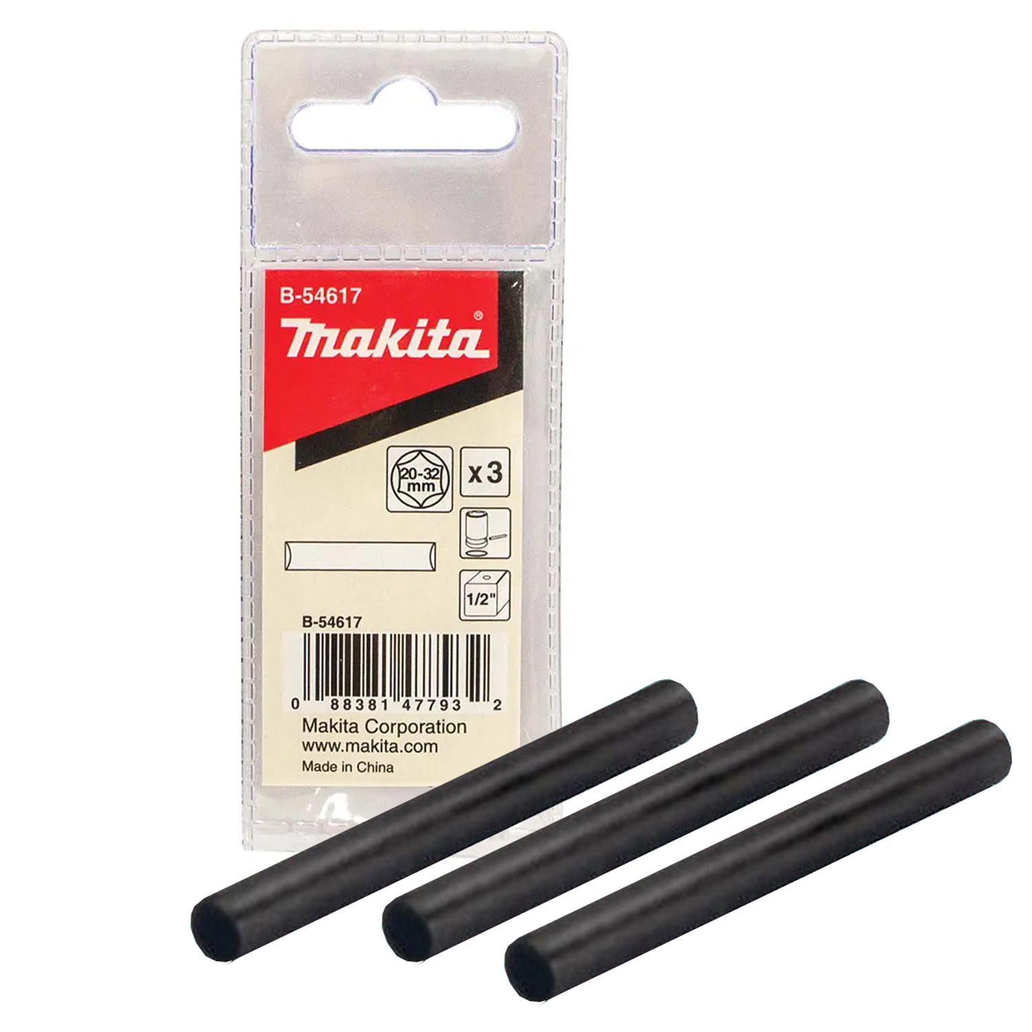 Tên / Mã phụ kiện: Makita B-54617 — Pin set / Chốt giữ đầu tuýp 1/2" cho tuýp 20-32 mm.
