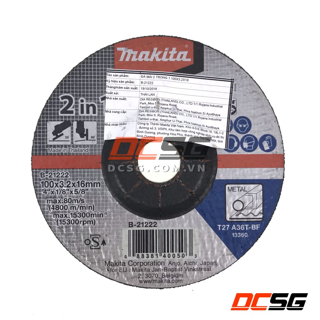 - Đá mài B-21222 được thiết kế có độ dày 3.2mm nên dùng được cho cả 2 chức năng cắt và mài kim loại.