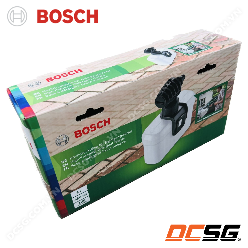 - Đầu phun xịt có bình xà phòng 450ml Bosch F016800509 dễ dàng phun chất tẩy rửa nhanh hơn để có kết quả vệ sinh hiệu quả.