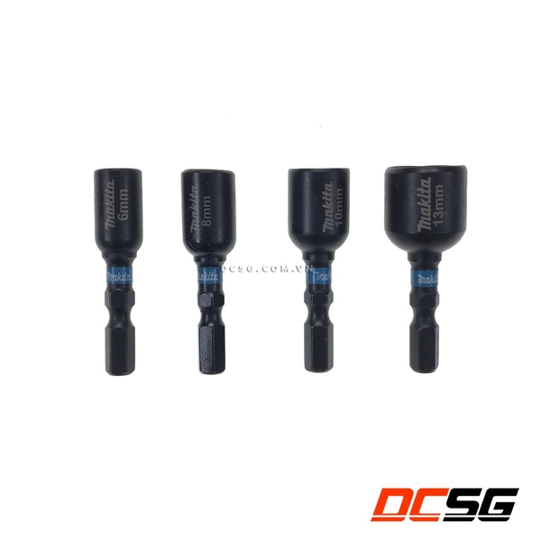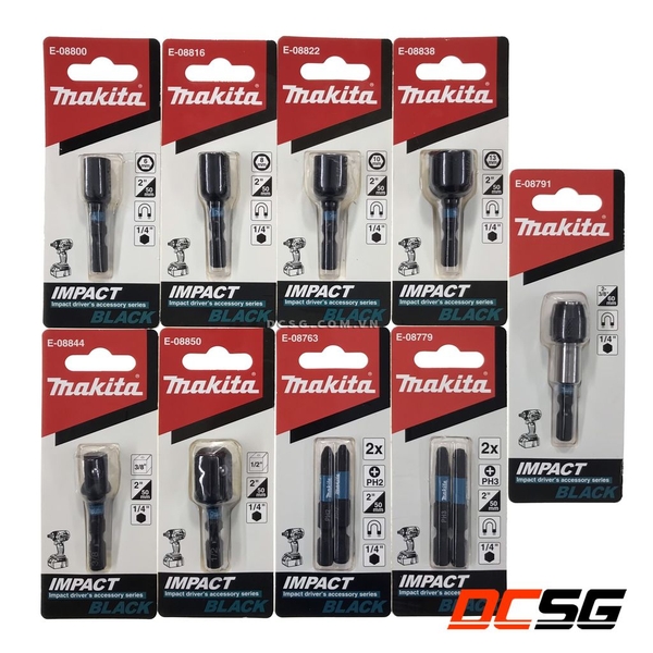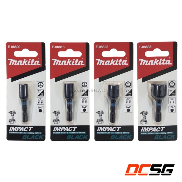 + Sản phẩm thuộc dòng Serier IMPACT BLACK với thiết kế màu đen mạnh mẽ, chống rỉ sét, có khe giảm xốc để bảo vệ đầu chuyễn và được làm nổi bật bằng vòng nhựa màu xanh có thương hiệu Makita đặc trưng