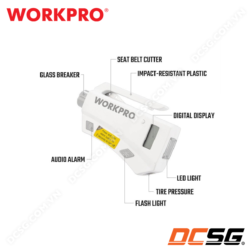 - WORKPRO WP319024 là một công cụ sinh tồn dùng khi khẩn cấp, đa chức năng 7 trong 1, cần thiết cho trường hợp khẩn cấp trên ô tô.