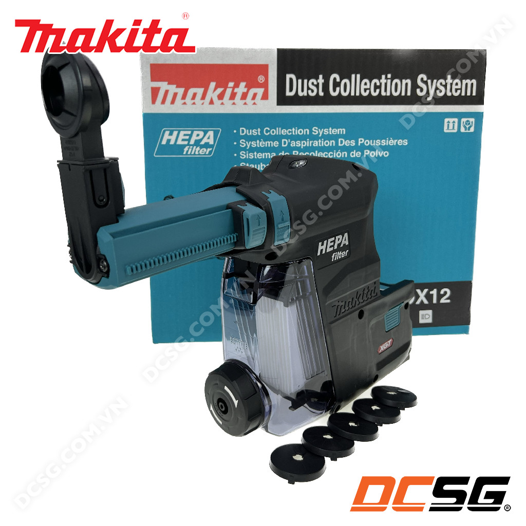- Hệ thống hút bụi DX12 Makita 191E53-1 được thiết kế để thu thập bụi hiệu quả với hoạt động kích hoạt của sê-ri máy khoan bê tông dùng pin 40Vmax HR001G
