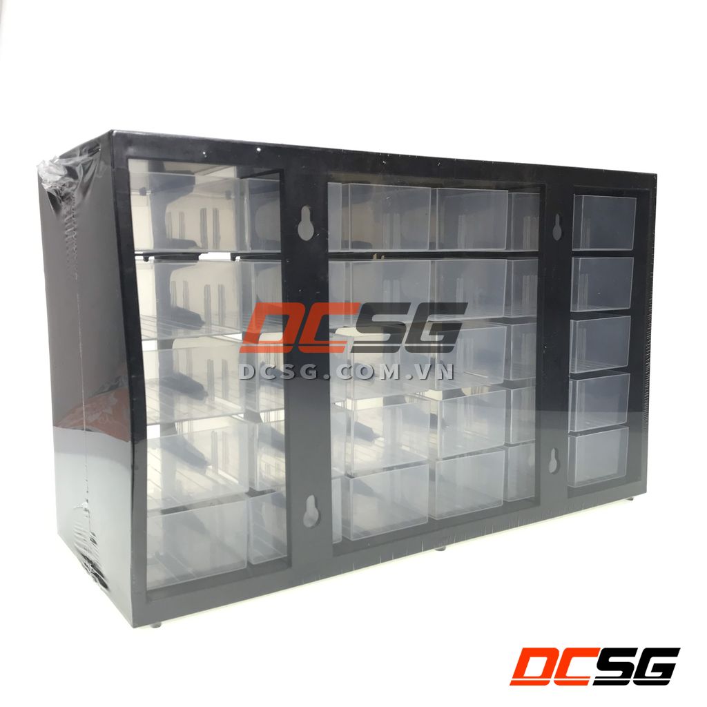 - Ngăn tủ (30 ngăn) được làm bằng nhựa PS trong suốt và cứng cáp.