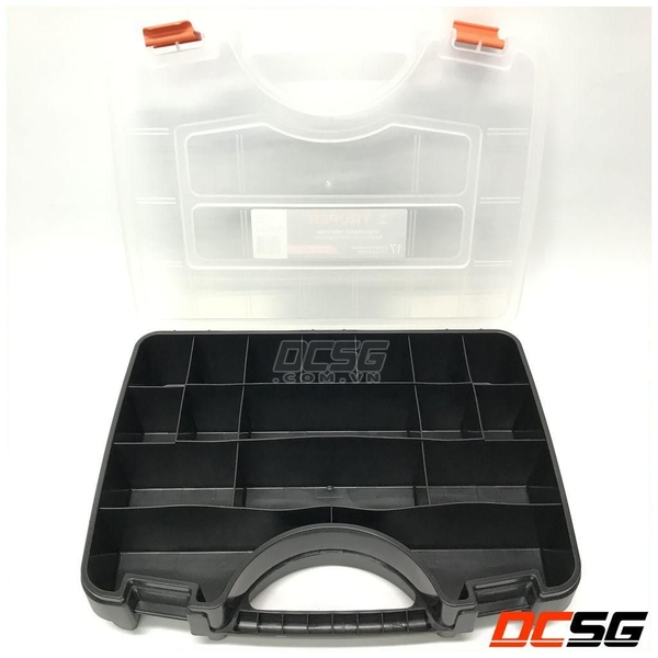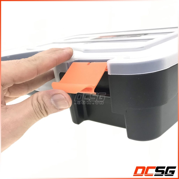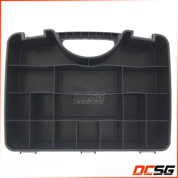 - Phần thân hộp được làm bằng nhựa polypropylen (pp) chịu được lực va đập tốt, thiết kế bên trong hộp có 17 ngăn được sắp xếp khoa học giúp người dùng có thể dễ dàng bố trí óc vít, mũi vít và mũi khoan để mang theo đi công trình.