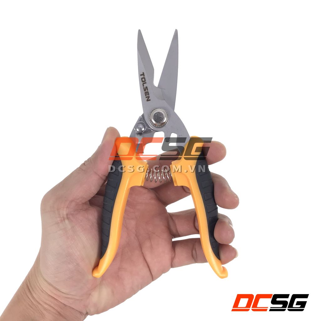 - Kéo đa năng 7 inch/180mm Tolsen 30042 có thể đáp ứng mọi nhu cầu công việc khác nhau nhờ lưỡi kéo sắc bén, thiết kế lò xo giúp kéo tự mở hàm. Đồng thời, bạn cũng có thể sử dụng kéo cho các hoạt động hằng ngày trong gia đình như cắt giấy, vải, làm vườn...