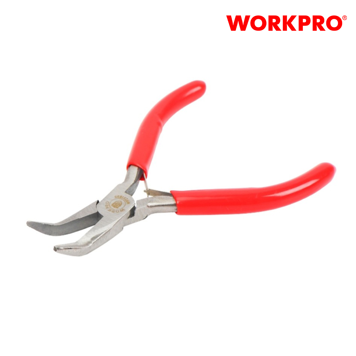Kìm mũi cong mini Workpro - WP231039 là một sản phẩm công cụ cầm tay đa năng của thương hiệu Workpro. Với kích thước nhỏ gọn chỉ 120mm, sản phẩm này được thiết kế để đáp ứng nhu cầu sử dụng trong các công việc nhỏ hẹp và tinh tế.