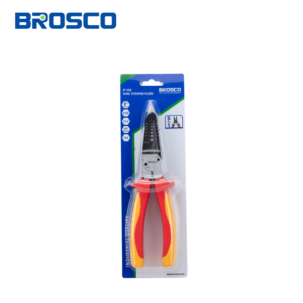 Kìm tuốt dây đa năng cách điện 1000V VDE BROSCO B50130 là công cụ không thể thiếu cho các kỹ sư điện, thợ điện và những người làm việc liên quan đến điện, với các chức năng: