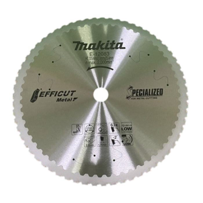 - Kích thước: Kích thước của lưỡi cắt kim loại Efficut là 305mm (đường kính), 25.4mm (đường kính lỗ trục), với 63 răng cắt. Kích thước này thường được sử dụng trong các máy cưa chuyên dụng để cắt kim loại.