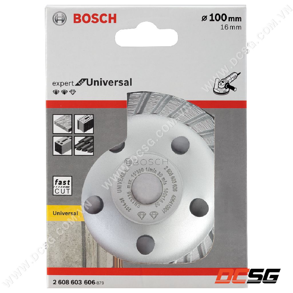 - Đĩa bào bê tông 100x16mm Expert for Universal Bosch 2608603606 dùng để lắp vào máy mài góc 100mm mài nhẵn các sàn bê tông, vách tường không bằng phẵng, gồ ghề...