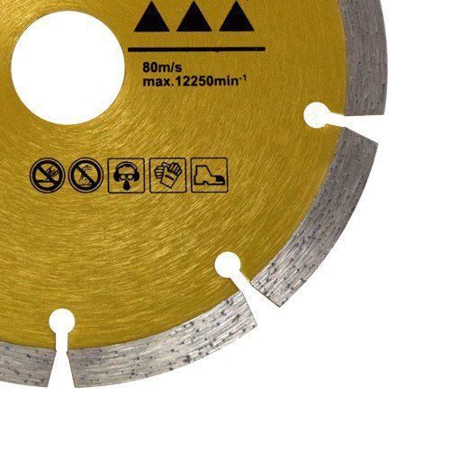 Thiết kế: lưỡi cắt “phân đoạn” (segmented diamond blade) — tức lưỡi có các đoạn răng kim cương xen kẽ với khe hở nhỏ, giúp tản nhiệt và thoát vụn tốt khi cắt.