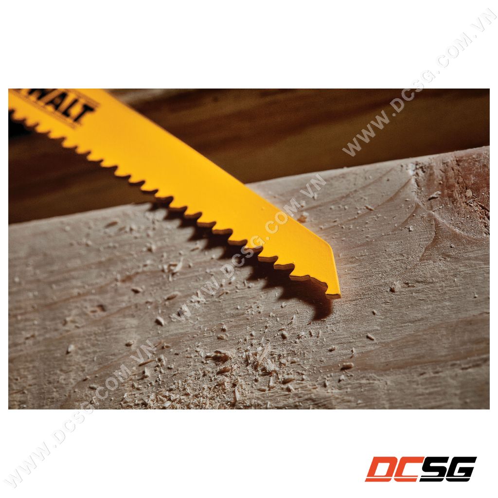 - Lưỡi cưa kiếm DEWALT DW4802 có răng được gia cố bằng thép lò xo Bi-Metal để tăng thêm sức mạnh khi cắt xuyên qua đinh và các vật thể lạ khác.
