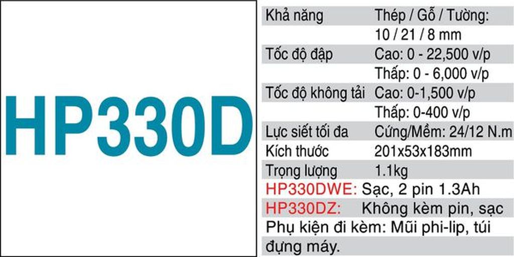 + HP330DWE: sạc, 2 pin 1.3 Ah