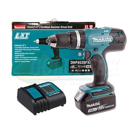 + DHP453SYX8: sạc nhanh, 01 pin 3.0 Ah, 02 bộ mũi vít, bộ mũi khoan, 02 tua vít, thước dây, dao rọc giấy.