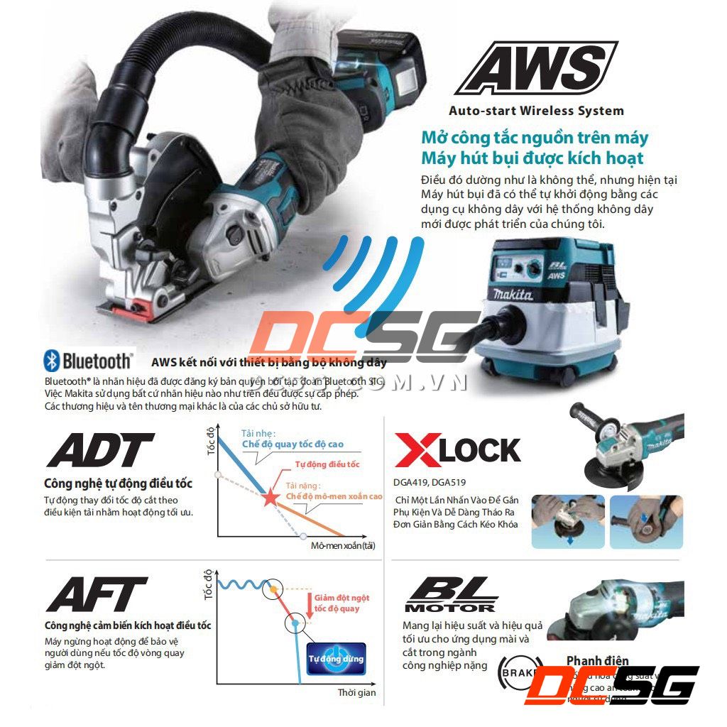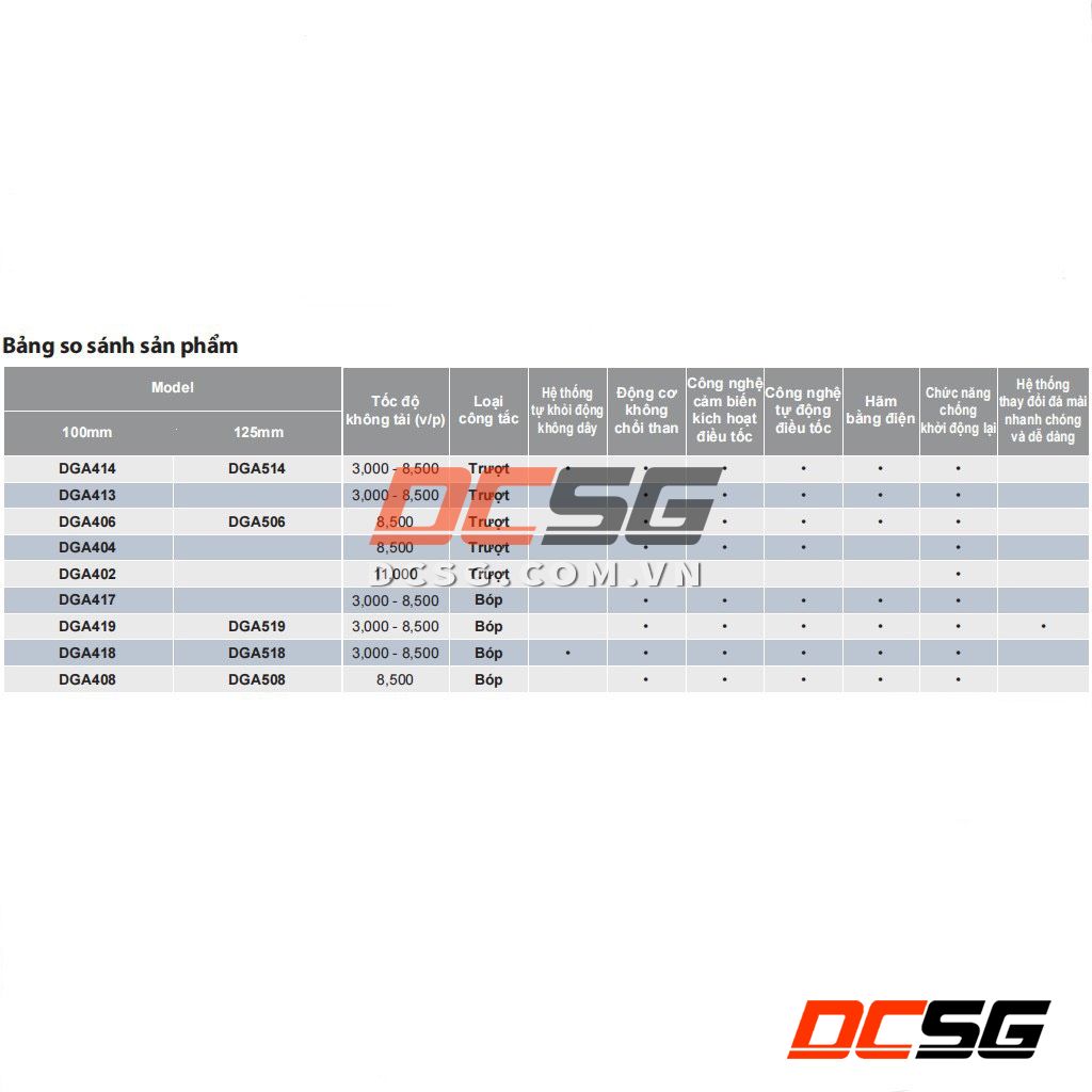 - Model DGA404Z là máy mài góc 100mm chạy bằng pin Li-ion 18V và được trang bị động cơ DC không chổi than cải tiến cao so với các kiểu máy hiện tại DGA402 / DGA452.