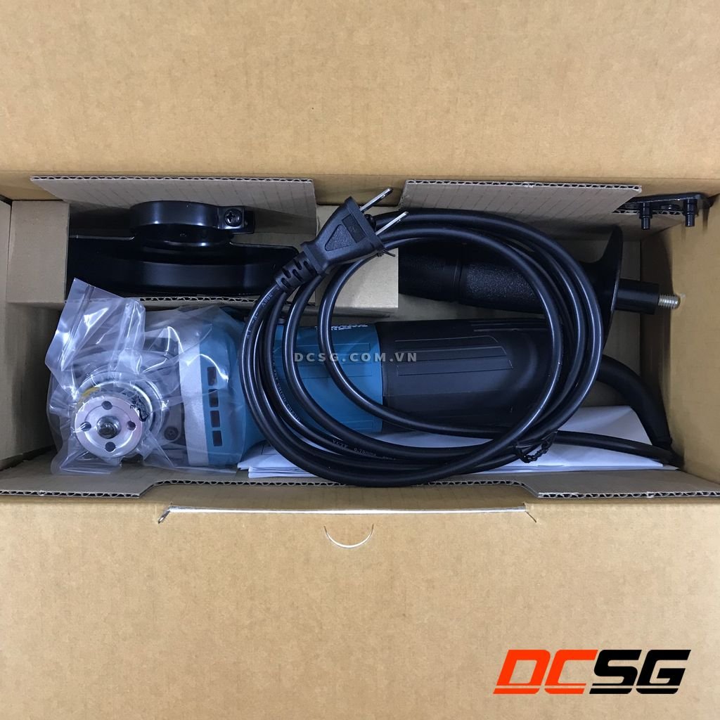+ Bộ sản phẩm bao gồm: Máy M9506B, bảo vệ đá 100mm, khóa mở, tay cầm phụ, tất cả được chứa trong bao bì giấy carton được thiết kế thật bắt mắt trên nền trắng xanh.