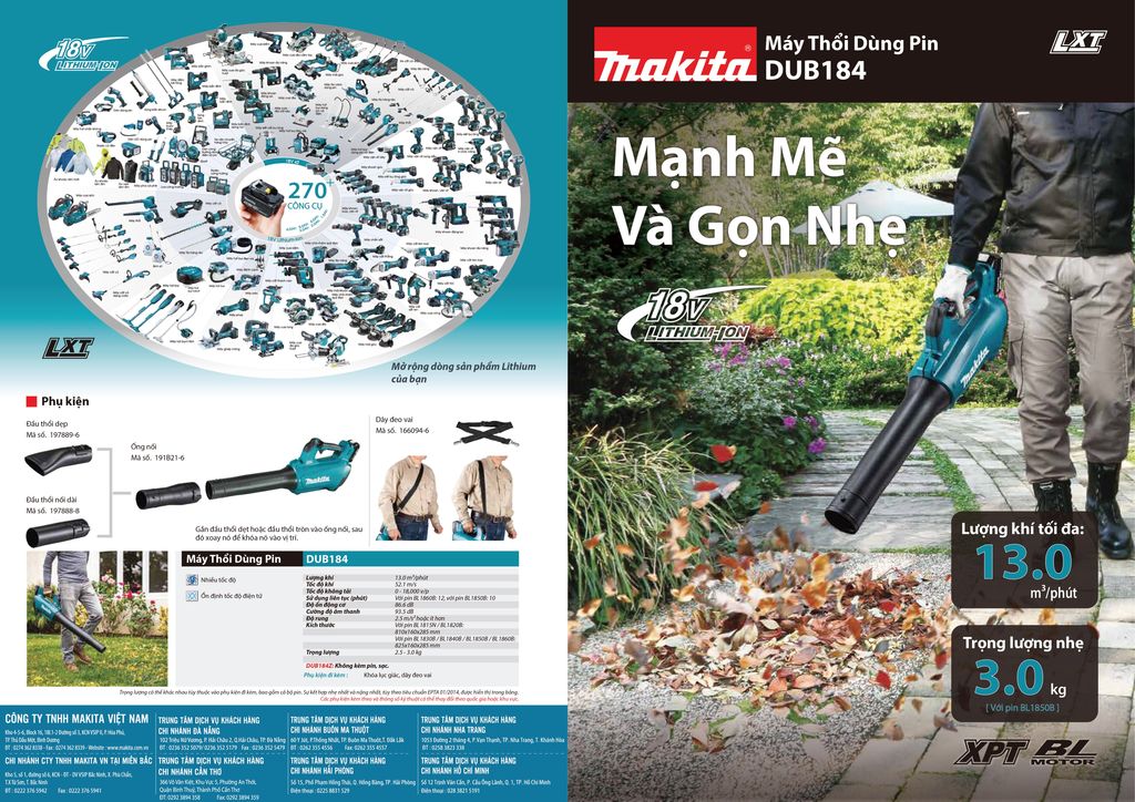 - Công dụng: Máy thổi MAKITA là dòng máy thổi rất tiện lợi, máy có tốc độ gió mạnh thích hợp cho công việc vệ sinh máy móc thiết bị, vệ sinh trong nhà xưởng…Máy có thể đảm nhiệm hai nhiệm vụ hút và thổi bụi cùng lúc