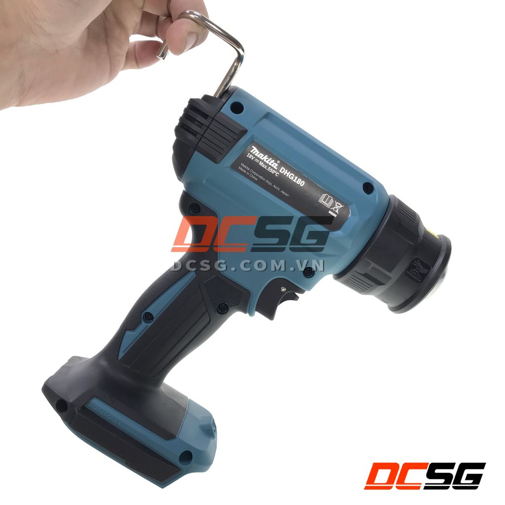 - Model DHG180ZK là máy thổi nóng chạy bằng pin Li-Ion 18V LXT, có nhiệt độ không khí tối đa 550 ° C cho nhiều loại công việc sử dụng pin, chẳng hạn như dán giấy tường, làm khô hoặc loại bỏ sơn, v.v.