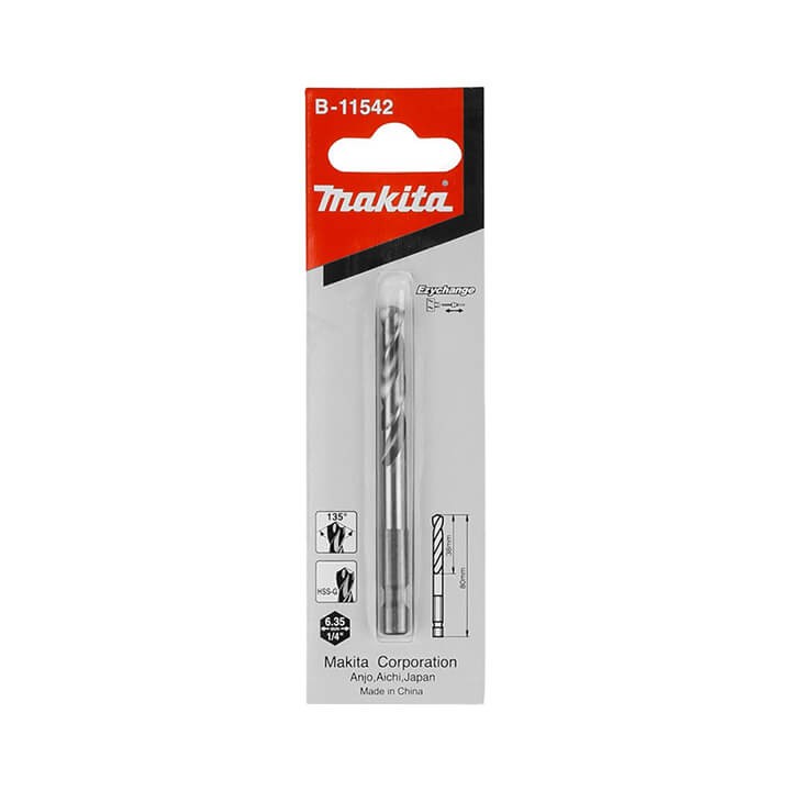Đuôi: Lục giác 6.35 mm (¼″) — thuận tiện cho máy khoan/driver có đầu kẹp lục giác hoặc sử dụng trong bộ mũi khoét Ezychange của Makita.