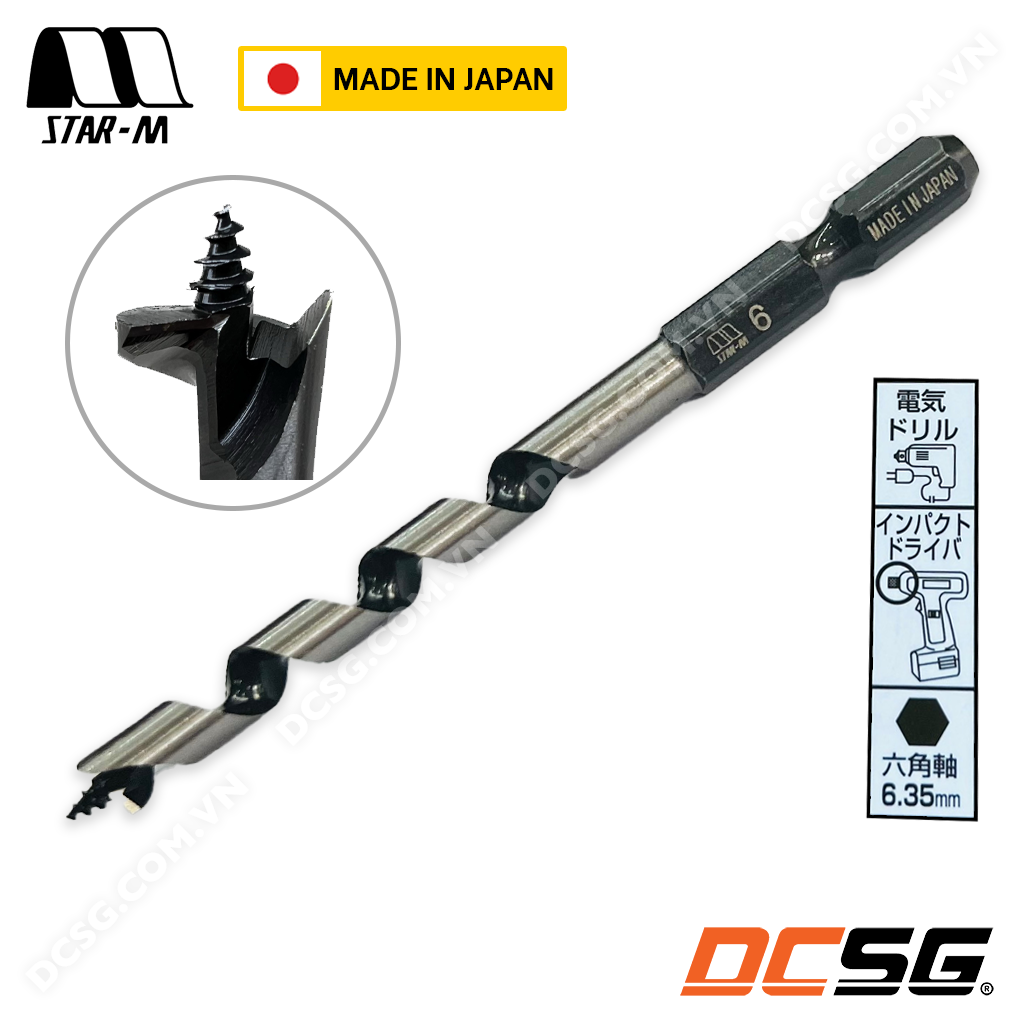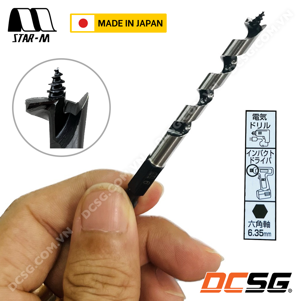 - Mũi khoan gỗ No.5 STAR-M với thiết kế đầu mũi có ren xoắn ốc tự dẫn tiến giúp khoan nhanh trên vật liệu gỗ mà không cần tốn nhiều lực ấn xuống, cho lỗ khoan sạch và ổn định khi sử dụng liên tục.