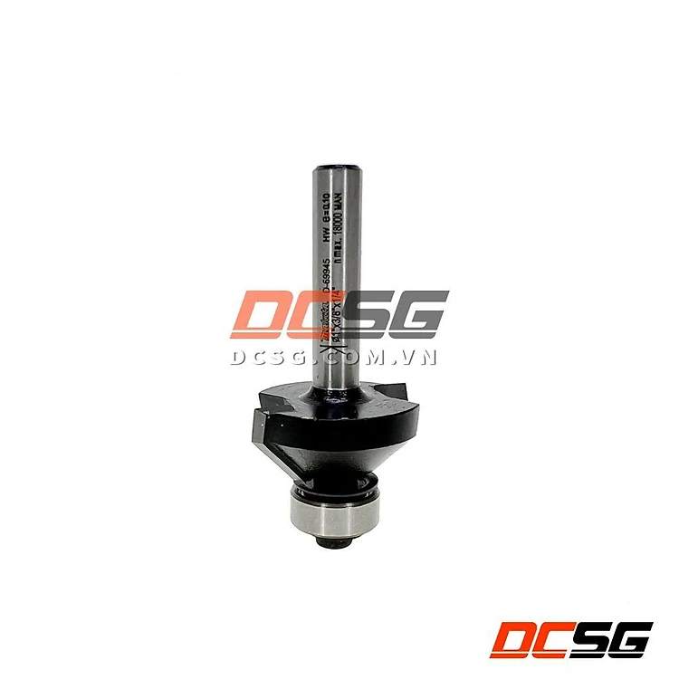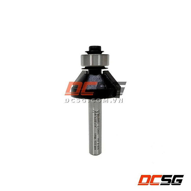 Loại mũi: Mũi phay vát cạnh (chamfer bit), với ổ bi (bearing) — giúp lưỡi phay dẫn hướng ổn định khi phay mép hoặc vát cạnh.