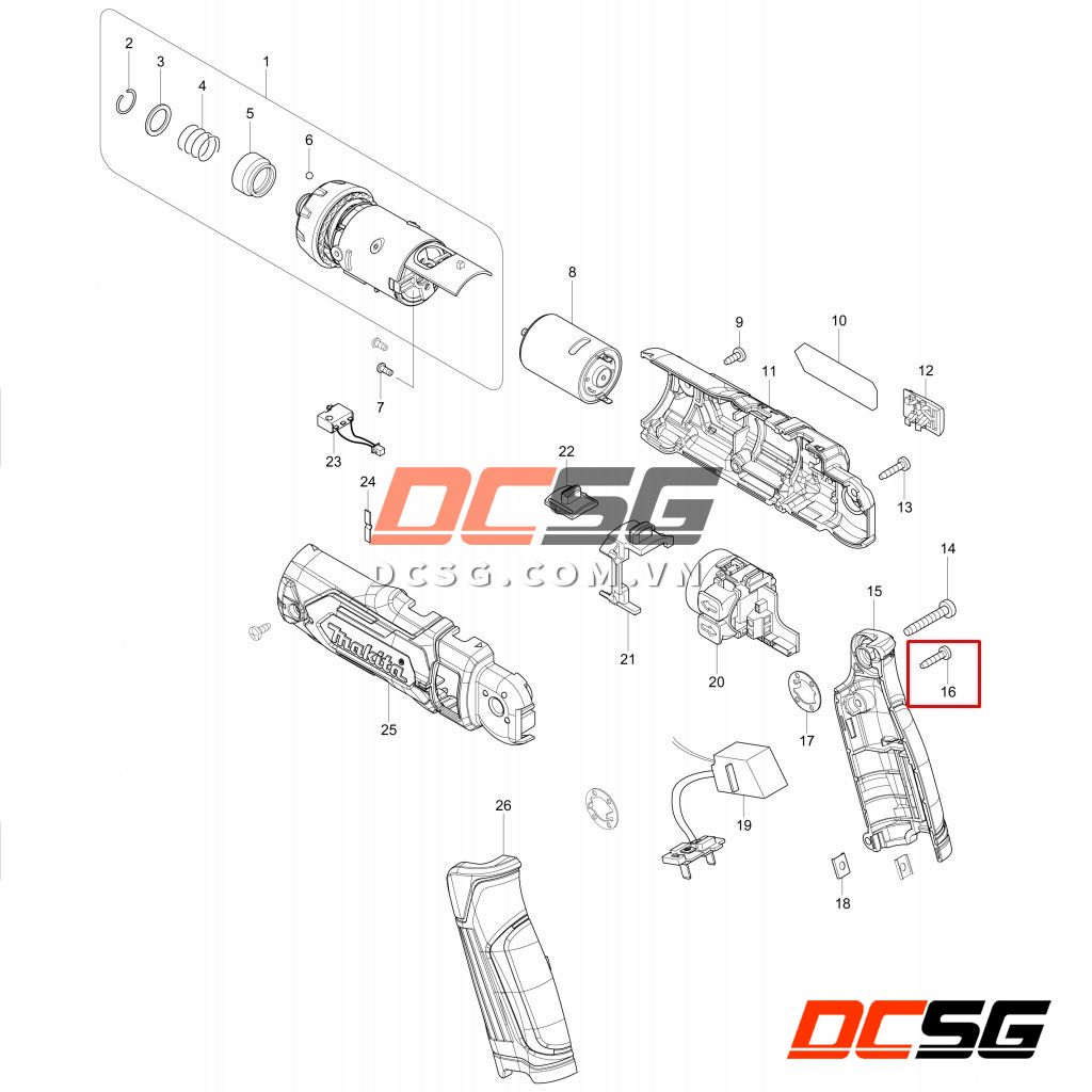 - Vui lòng tham khảo sơ đồ hình bên dưới, ốc vít có thể lắp vào vị trí số 13 và 16