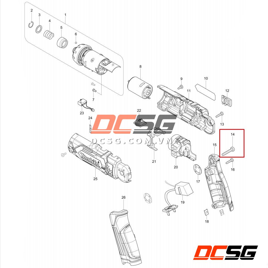 - Ôc vít 4x25mm 266374-1 Makita dùng để bắt cố định giữa vỏ thân và vỏ tay cầm của máy vặn vít gập dùng pin 7.2V Makita DF010D, DF012D, TD020D, TD021D, TD022D
