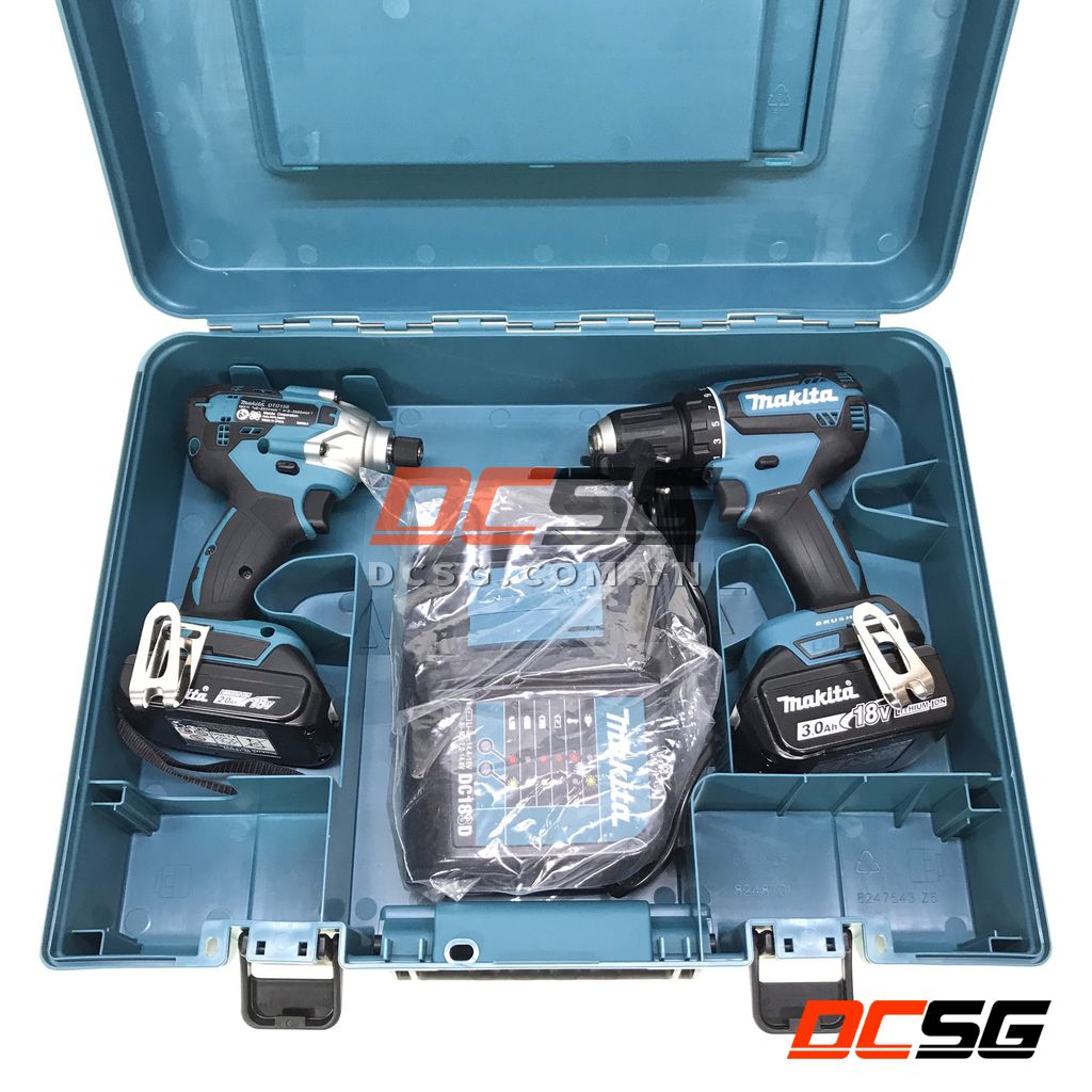 - Khả năng chứa: 2 máy (khoan hoặc vít), 2 pin 18V, 01 bộ sạc và nhiều loại phụ kiện khác.