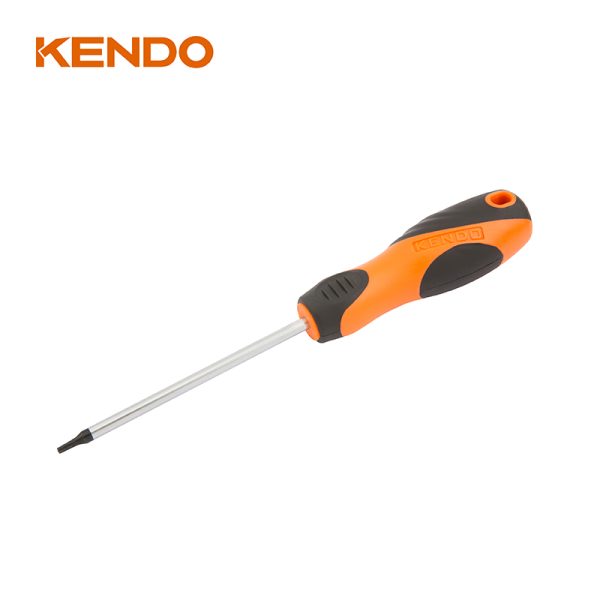 - Tua vít Torx (đầu hình sao) kích thước T10 × 100 mm của Kendo – mã 20166 thiết kế dành riêng để vặn các vít Torx/Star trong công việc cơ khí, sửa chữa, lắp đặt thiết bị… với chất liệu thân bằng thép Chrome Vanadium (Cr-V) bền bỉ và tay cầm bọc cao su (TPR) tạo độ bám chắc, chống trượt khi thao tác.